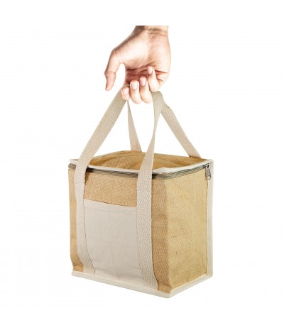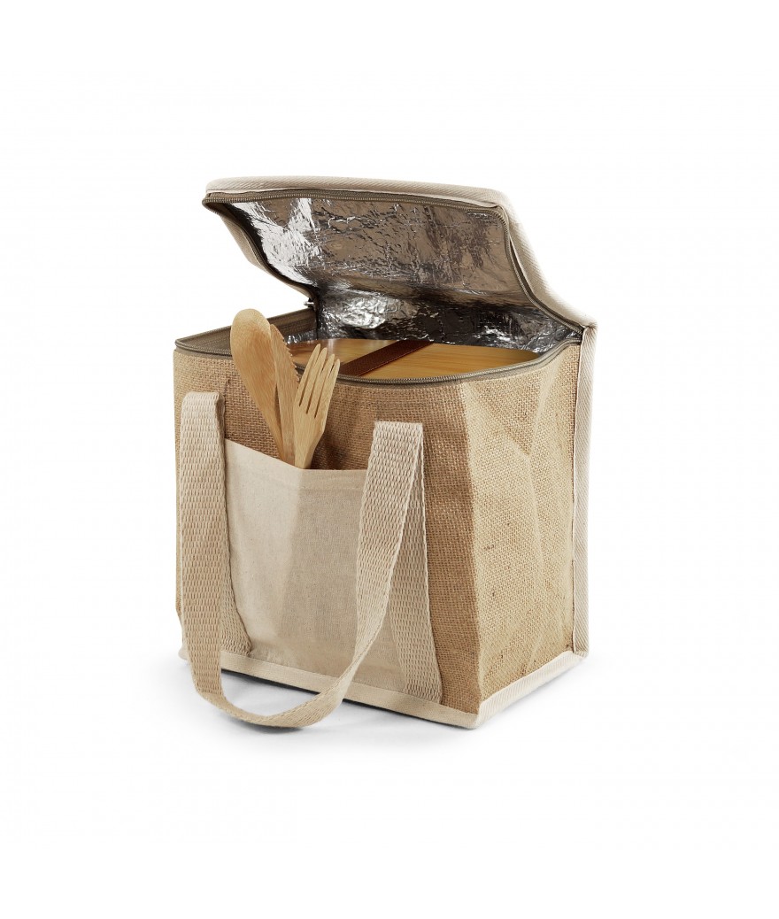 Lunch bag isotherme 100% jute, poche en coton recyclé