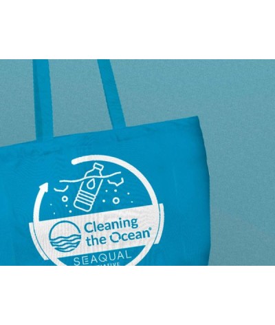 Sac de plage fabriqué à partir de coton recyclé et de matière des océans SEAQUAL , un matériau issu de déchets plastique collectés en mer pour la lutte contre la pollution plastique (*).... Suite dans la description