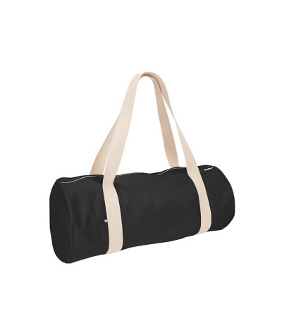 Sac polochon coton bio - Made in France Toile 240 g. 100% Coton Biologique Anses en ficelle coloris naturel. Zip coloris naturel. Confection 100% Française. Détail tricolore pincé sur une anse.