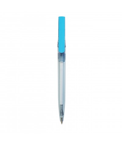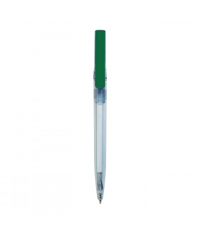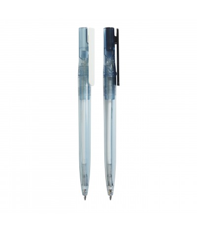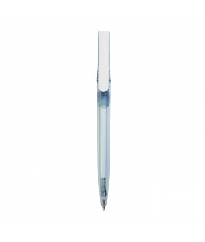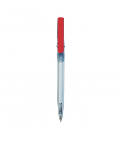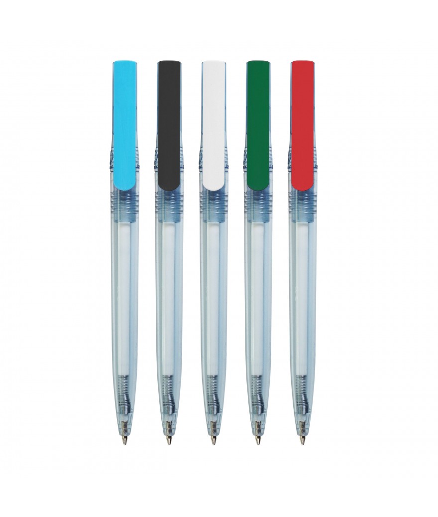 Stylo bille certifié 100% PET recyclé Encre bleue, corps bleu transparent Fabrication européenne Clips noir, blanc, rouge, vert, bleu