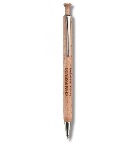 Parure stylo bille et portemine en bois naturel FSC. Poussoir en bois et attributs en métal nickelé. Le set est livré dans un étuis carton noir.
