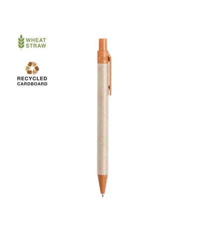 Stylo bille en carton recyclé de couleur naturelle et accessoires bio paille de blé et ABS, afin de promouvoir l’utilisation et le recyclage des matières premières, réduisant ainsi les émissions polluantes.