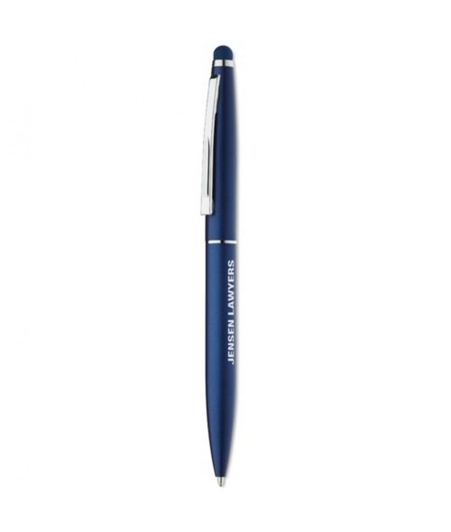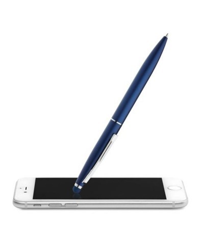 Stylo bille twist en aluminium avec finition mate et embout tactile. Encre bleue.