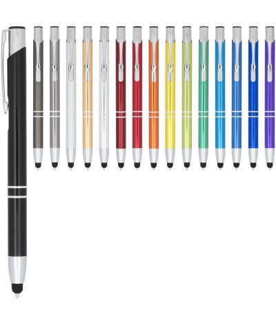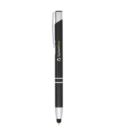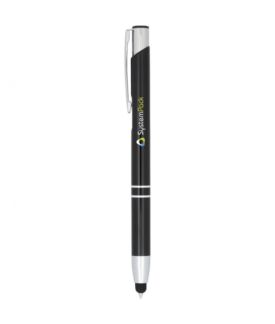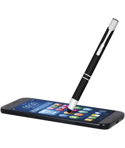 Stylo à bille avec bouton poussoir et stylet pour écran tactile.