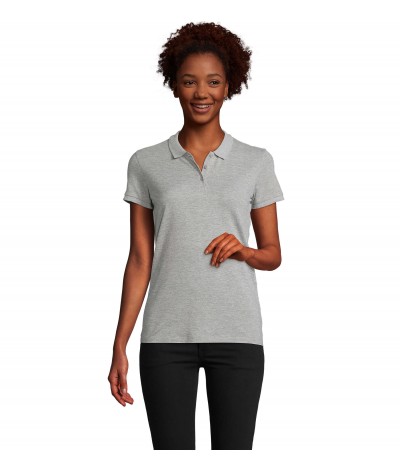 Polo femme Maille piquée 170 gr. coton issu à 100% de l'agriculture biologique Col en côte Bande de propreté au col Patte boutonnée renforcée 85 % coton bio / 15 % viscose : 360 Gris chiné