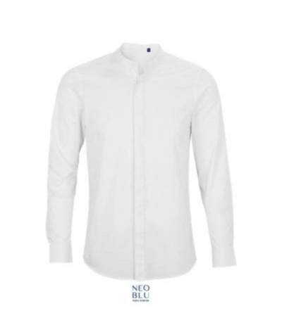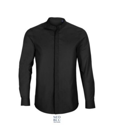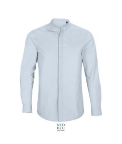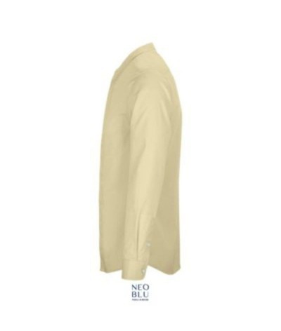 Chemise 60% coton issu de l'agriculture biologique - 40% polyester recyclé Manches longues Col mao Patte de boutonnage cachée Poignets ajustables
