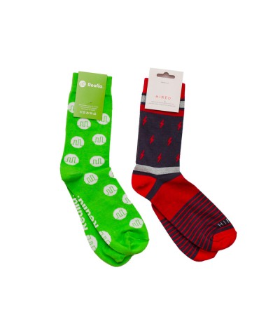 Chaussettes avec votre logo tricoté à vos couleurs. Fabriquées en coton biologique COTON certifié GOTS Avec étiquette individuelle recyclée et sac compostable. Fabriquées en Europe.