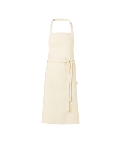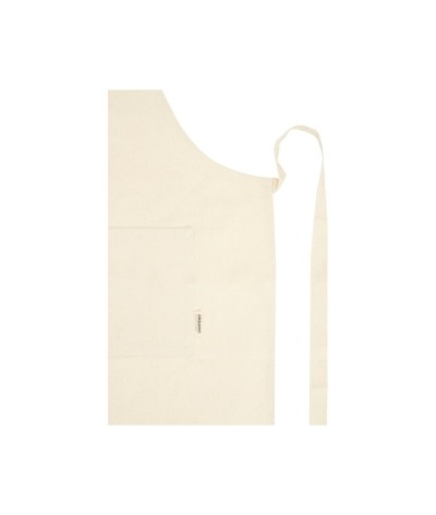 Tablier durable en coton biologique certifié GOTS de 200 g/m². Comprend 2 poches adjacentes d'une taille combinée de 45 x 20 cm, et une fermeture à cordon d'un mètre. Longueur de la lanière de cou : 55 cm.